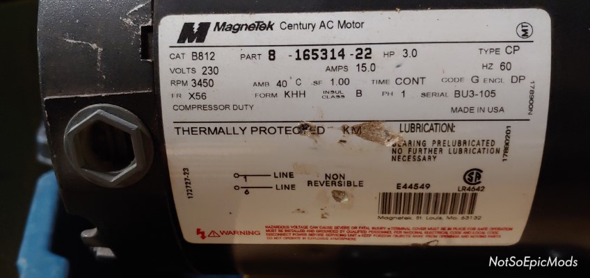 It’s like things just keep falling into place. Originally I was just going to use my dinky little 20gal tank with the new compressor but I decided to browse kijiji(a website people can post to buy and sell things) to see how much a bigger used tank would cost me. I know a new one would be around $400-$500 alone so when I happened to see an 80gal tank for $100 I jumped on it. I had a look at it and the interior seemed to only have minor surface rust from mainly just age. The tank also had an extended easy access drain so I know it was more than likely drained quite frequently. I was so excited that I only remembered to take a picture of the tank plate.