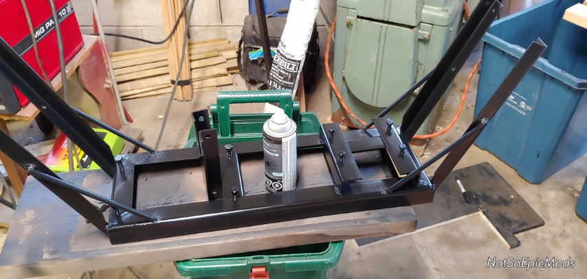 After getting everything welded up I gave the racks a coat of gravel guard paint to give them a bit of protection from loading and unloading tires every season.