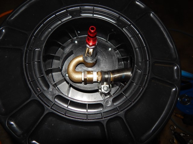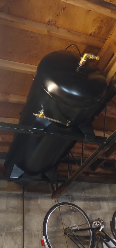 Since I got the compressor and pump all set up it was time for me to work on the tank. I had to buy some fittings since the tank only came with an overpressure valve and the drain valve. I probably went overboard going with all brass fittings for the inlet. I also went with a 3/4″ check valve to try and get as much flow as possible into the tank. I also painted the tank black so that is more easily blends into where I am putting it.