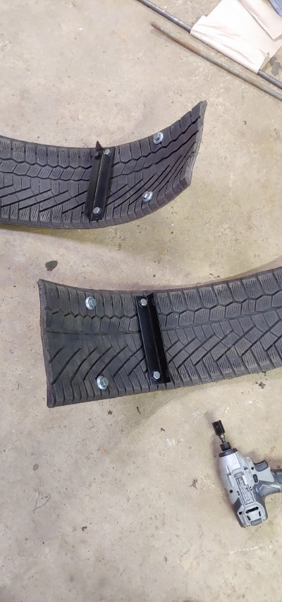 After welding and cleaning up all my welds, I did some test fitting with a set of tires. I then drilled holes in each corner of the racks.
