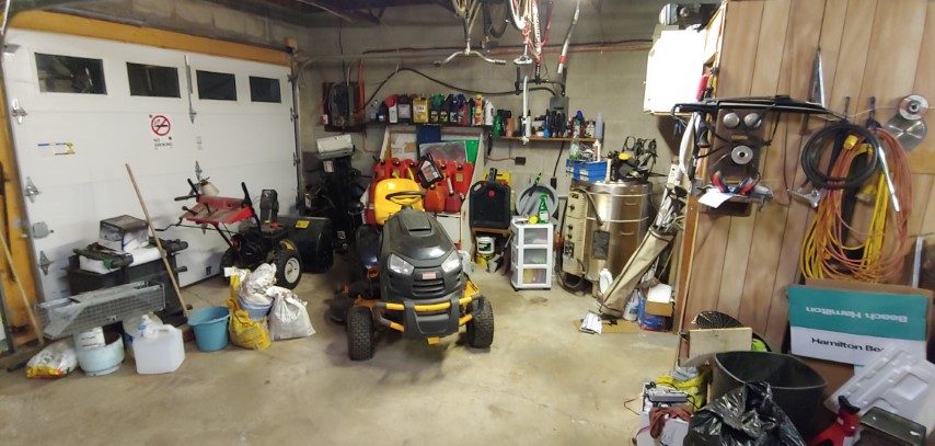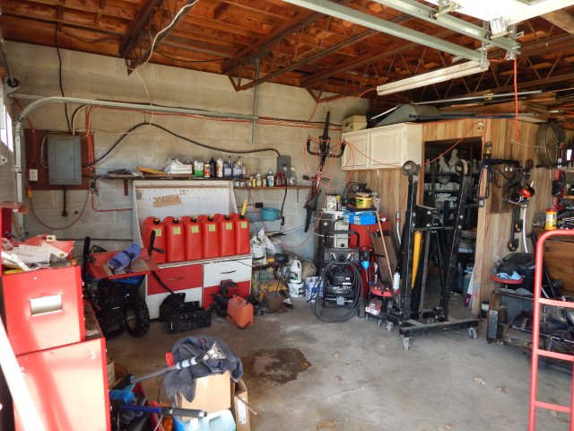 Obviously, I want to turn this into my ultimate garage. So here are some in-progress pictures of it. Also before too many of you go ballistic about the gas containers, let me just tell you this is the best place for them. It is the furthest away from any possible sparks and right beside the garage doors where it is best ventilated to eliminate standing fumes. I will eventually either build a steel storage container or get a larger single portable container with a pump.