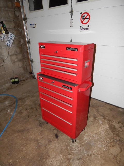 Nothing major in this update just reporting that the water drain for my air tank works well. I’m not sure if I’ve mentioned this before but after getting the new toolbox and selling one of them I need a place for the 2 that have sentimental value to me. I have basically given them to my mother since she always complains that she doesn’t want to mess up my tools. There are lots of extra tools that she can have and use so I thought it would be perfect to set up the back corner of the garage for her as that is where she would be accessing the garage most in the summer. I also have an in-progress picture from a month ago that I forgot to post.