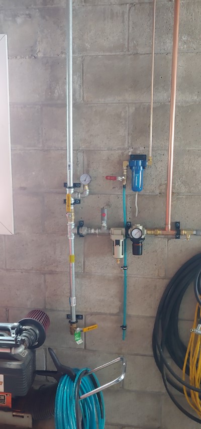 Well, I got it all finished with the final 3/4″ flex line down to my main feed. I don’t see myself changing it all that much for the foreseeable future. It was a lot of work and I even did a video tour of it. I also have a short clip of me breaking in the compressor pump. You can kind of tell what the noise level will be while it’s in operation.
