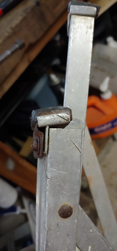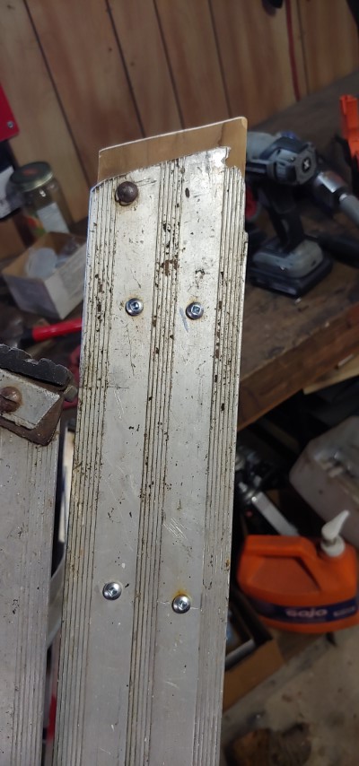 So I’m not sure if this should be put here or just in the gallery but while using the ladder we have I got a little annoyed with it and now I need to use the ladder in the house on our wood floors. The problem is this ladder is quite old and beat up. So before using it I had to repair the feet on it to not damage the floor in the house.