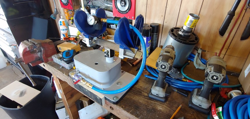 So a few things in this update. I’m redoing my entertainment system in the garage. If you go all the way back to Update #5 you can see a clear picture of the setup I’m going to be replacing. It was something I slapped together real quick but I have definitely outgrown it. Also, I need to clean my bench off as you can see it’s currently a disaster. I bought a hydraulic crimper for cable ends as trying to solder on cable lugs is too finicky to get a good connection. Other than that just some rewiring and adding some solar features to it. I also got around to doing the water remover and hour meter upgrades to the compressor.