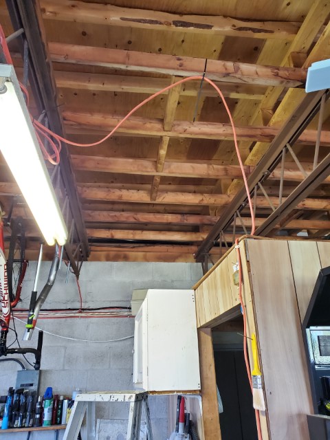 So with the new decision to run 4 fixtures per rafter, my OCD will allow me to also evenly split the lights into 2 individual switches. Now I know I should be using armored cable or conduit to follow code but when you see some of the wiring I’m replacing this is far from being a major issue currently. Also, I’m not planning on puncturing or damaging the wire in any way and if it gets damaged accidentally I can attend to it right away.