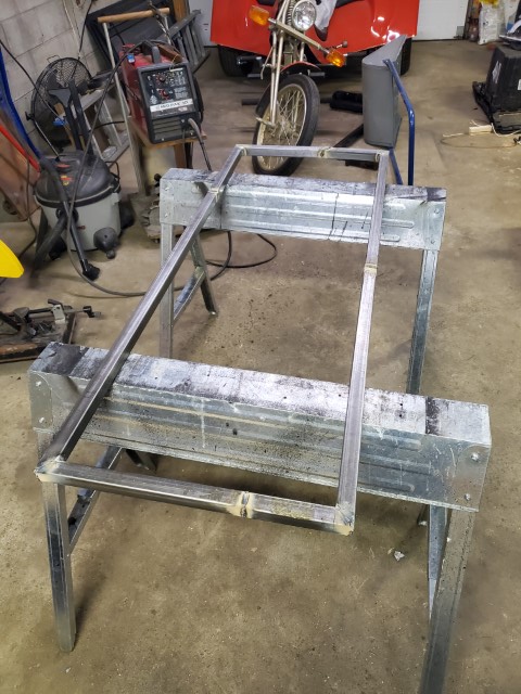 Alright, so I have somewhat of a game plan. I’m going to make some simple rectangles from 1″ square stock which I will suspend from the roof trusses. I bought the square stock from work but it wasn’t quite long enough so some long welding sessions were ahead of me.