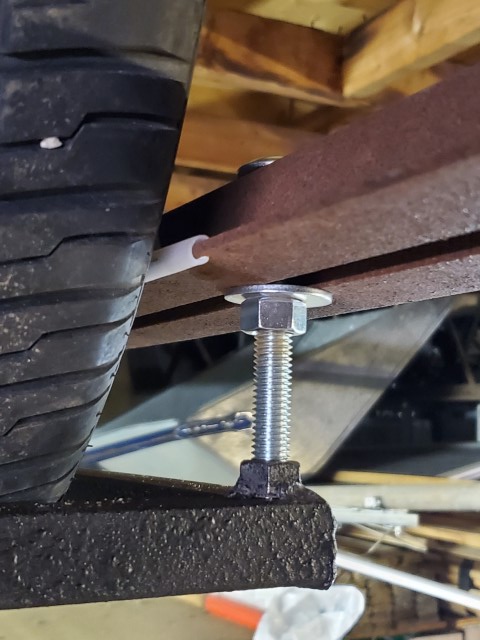 Here’s a close-up of how the racks are mounted to the roof trusses. It’s actually really strong and doesn’t have an issue handling the heavy tires even the ones for the truck. One issue I ran into when testing was that the rack would move quite a bit when there was no weight on it so that prompted me to use an additional nut to secure the carriage bolt into the trusses once I got them screwed into the racks.