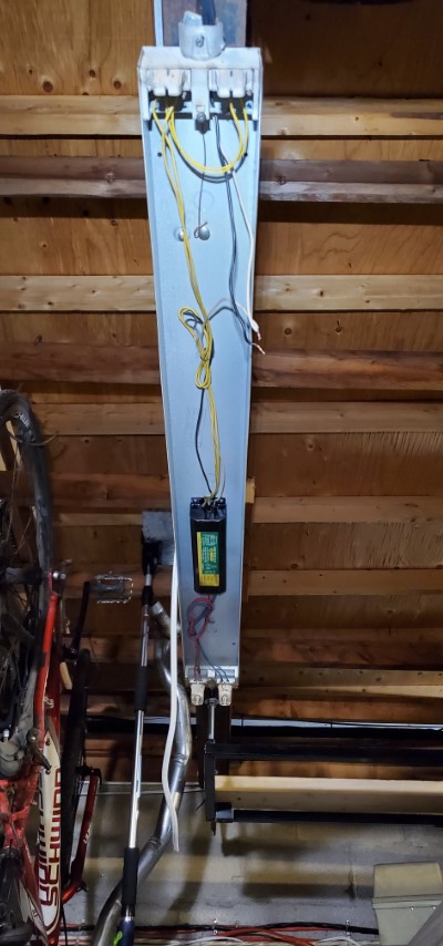 So, in trying to plan for the future I’ve decided I may want to try and run these lights off of solar at some point. Since you can split an electrical outlet into 2 separate outlets I’ve decided to have one side of a plug supplied with grid AC and the other side supplied with solar AC. Then I would just plug the garage lights into the corresponding outlet. Does this follow electrical code? Probably not. Is this cheaper than a dedicated transfer switch for just the garage lights? Most definitely.