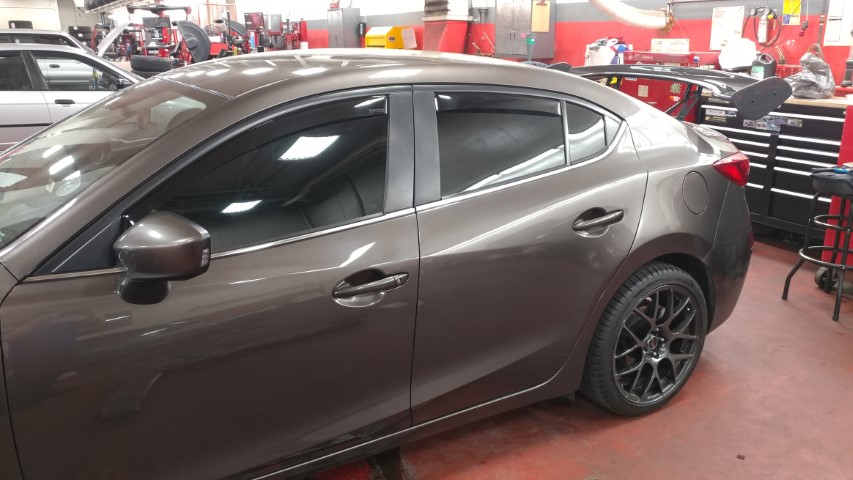 Got the footwell lighting done on his Mazda 3 as well as hardwiring the dash cam and a magnetic charging cable for his phone. I ran the switched ground wire from the dome light itself since it was less intrusive than splicing into the factory harness. He also wanted to be able to run the lights while the vehicle was off which required the use of a relay to switch between the dome light ground and constant ground.