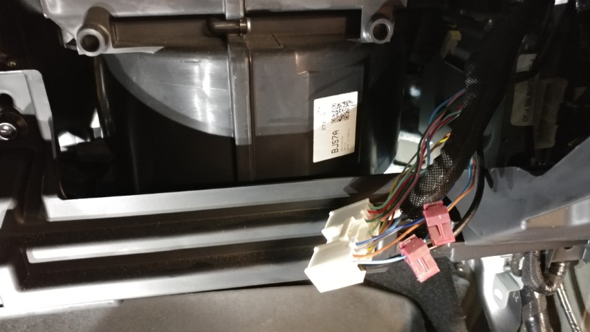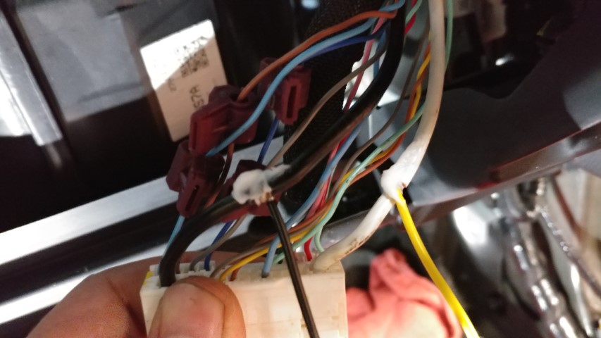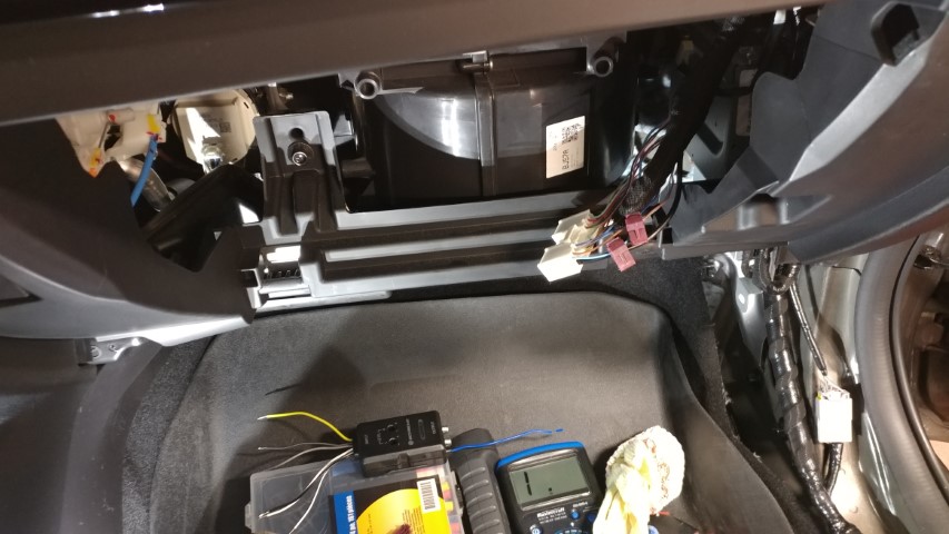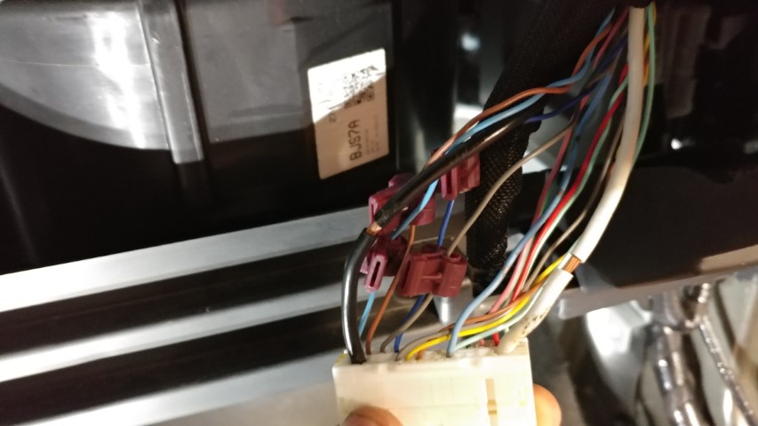As you can see from the diagram from ProDemand above the tuner/amp is located in the right kick panel and I’m looking for 4 wires, blue/gray and brown/light blue. I begin by disconnecting the negative battery terminal so that there is no power going to any critical systems such as the OEM amp or airbags since I will be taking apart the interior trim panels. I eventually just took all of them off since on this generation of Mazda 3 the panels are pretty easy to pull off unlike on my Civic. As you can see below I manage to find and disconnect the wiring harness from the OEM amp and begin my wiring. The wiring was pretty easy since everything I needed was on that amp plug, I opted to use T-taps on the speaker wires and solder in the LOC power and ground directly to the amp power and ground wiring.
