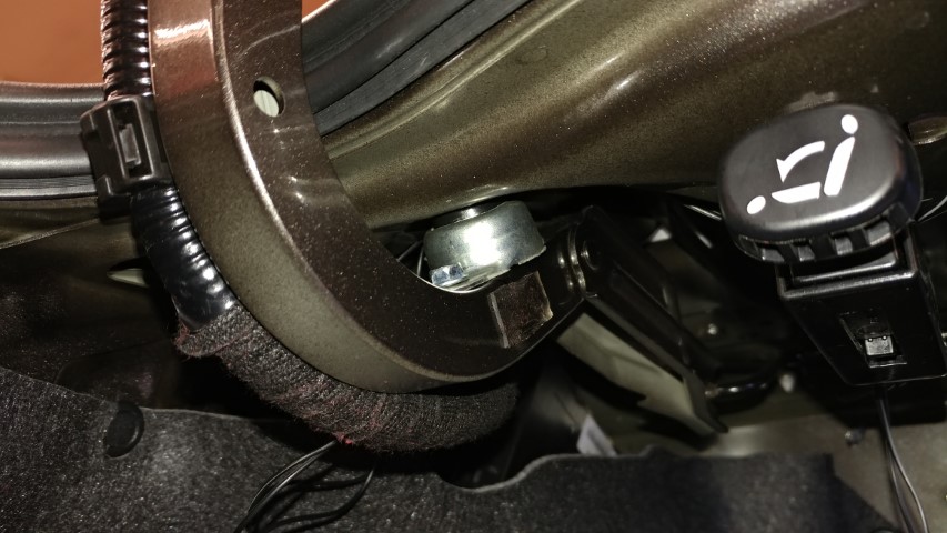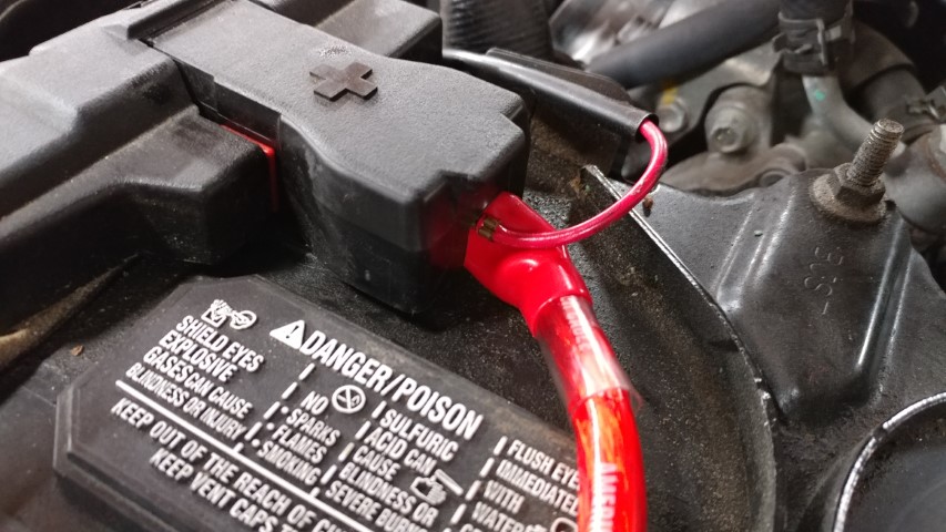 As you can see I neatly cut the positive battery terminal cap to fit properly back onto the terminal, I don’t think I can count how many times I’ve seen either these caps ripped off or simply left partially open after an amp install. These caps are a safety feature since they prevent any accidental shorting across the battery terminals. Anyways the lead wire for the fuse holder was just long enough for me to pass it under one of the fuse box mounting points allowing me to secure the fuse holder to the driver side strut tower and run the wire into the fender then into the cabin of the car.