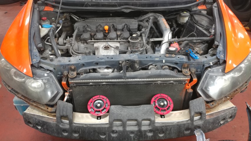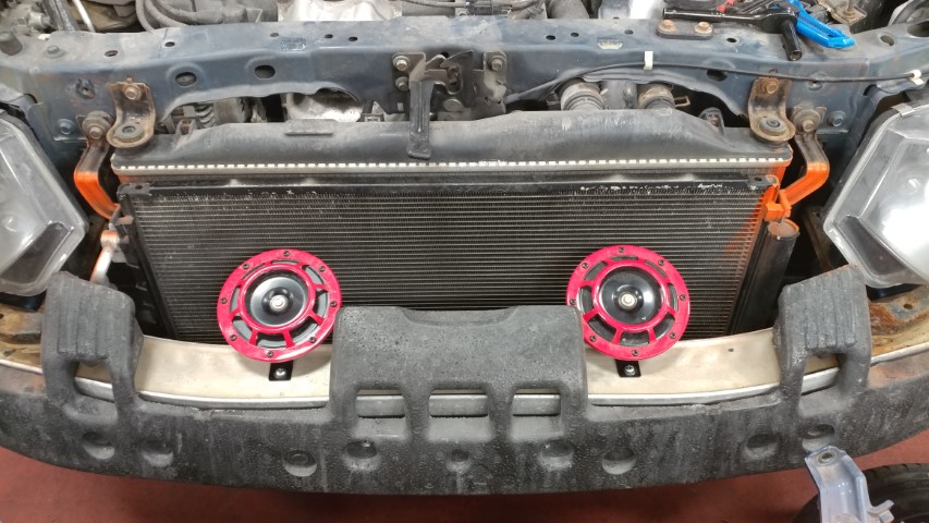 - Relocate Hella horns from engine bay to behind bumper