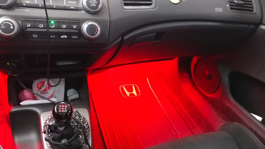 - Install ambient foot well lighting with on/off switch to key on circuit