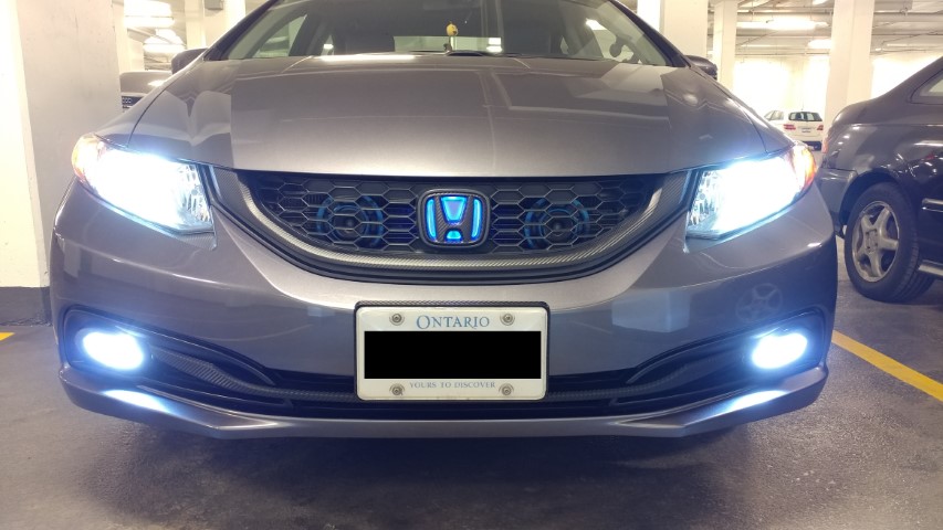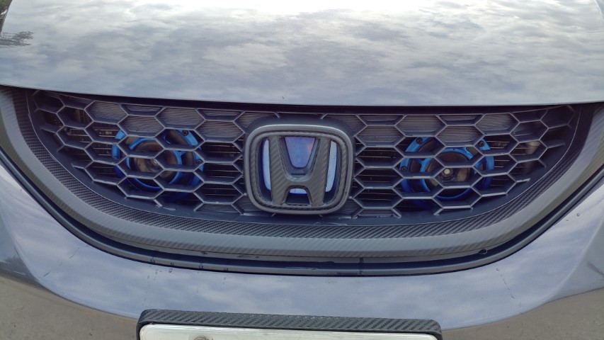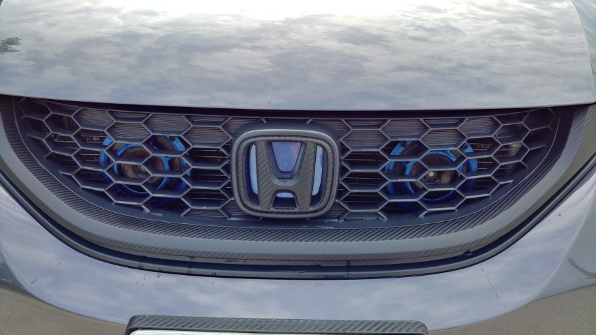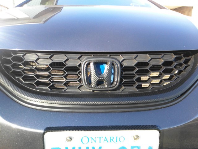 - Redo front grill trim carbon wrap and make custom blue backed blue glow H logo, Work posted on 9th Gen Forums Here