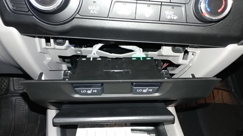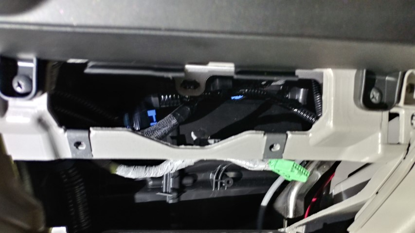 Next I had to make sure I could actually put them under the dash which mean tearing out the radio which requires pulling out the compartment under the radio and removing 2 screws in front and 2 bolts behind the dash then pulling on the radio assembly gently enough to release the clips.