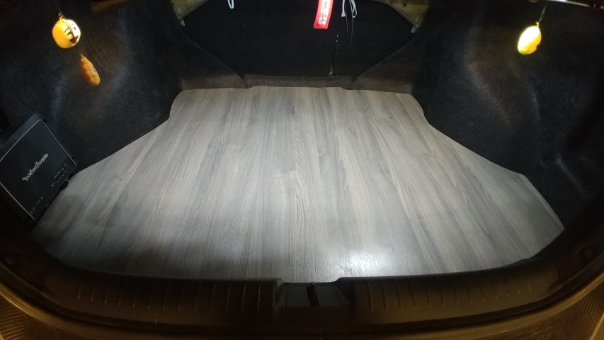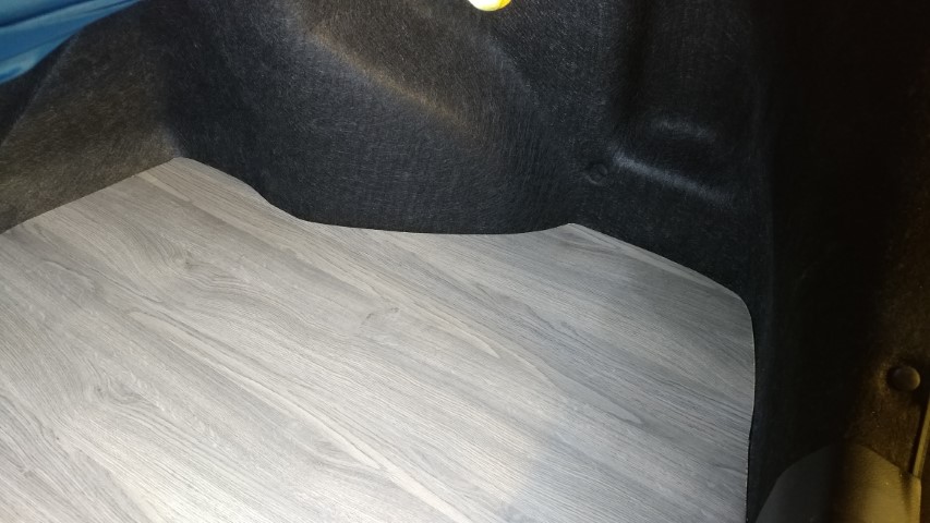 With the inside of the car feeling fresh I thought the trunk needed some attention. I originally had a universal trunk mat and was slowly collecting too much junk such as cleaning supplies and top up fluids. I collected all my cleaning supplies into a bucket to keep at work. I also got rid of a lot of top up fluids that were in large 4L containers. The only items I kept were 1L of oil and 2L of washer fluid which are neatly kept under the trunk with the spare for emergencies. Lastly I have seen it done before online so it’s nothing original but I got my hands on a case of laminate flooring and cut out a new floor. I had planned to do this a while back when I first saw it but never had any motivation until now to do it.